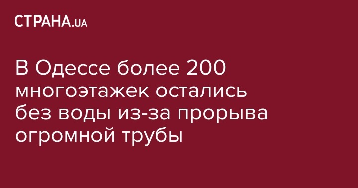 В Одессе жители более 200 высотных жилых домов остались без водоснабжения из-за прорыва водовода. Об этом сегодня во время совещания в мэрии сообщил заместитель директора "Инфоксводоканал" по техническим вопросам Олег Клепацкий, передает УНИАН.