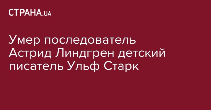 Умер шведский писатель и сценарист Ульф Старк, который считался одним из самых известных и уважаемых в мире детских писателей. Об этом его семья сообщила шведскому изданию Dagens Nyheter.