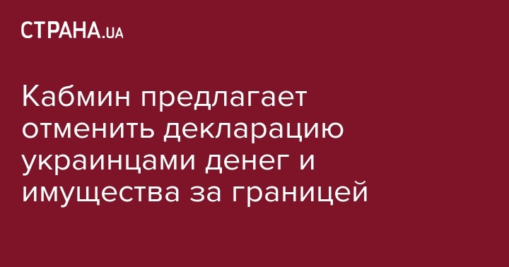 Кабмин предлагает Парламенту отменить обязательное декларирование гражданами Украины валютных ценностей и другого имущества за пределами страны. Об этом пишет "Интерфакс-Украина".