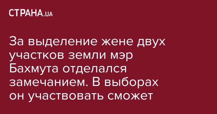 За выделение жене двух участков земли мэр Бахмута отделался замечанием. В выборах он участвовать сможет