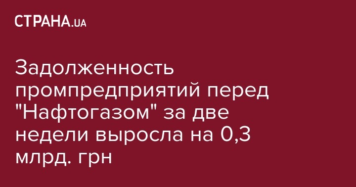 Задолженность промпредприятий перед "Нафтогазом" за две недели выросла на 0,3 млрд. грн