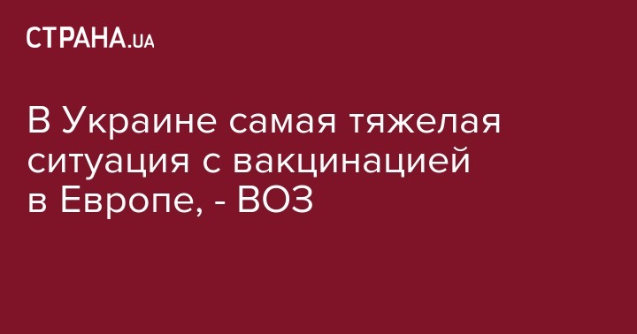 Представитель Всемирной организации здравоохранения (ВОЗ) в Украине Марте Эверард заявила, что в Украине самая тяжелая ситуация с вакцинацией среди 53 стран Европы. Об этом сообщает УНН.