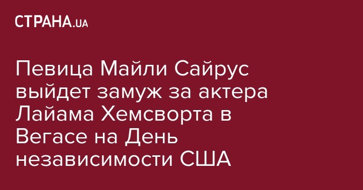 Певица Майли Сайрус выйдет замуж за актера Лайама Хемсворта в Вегасе на День независимости США