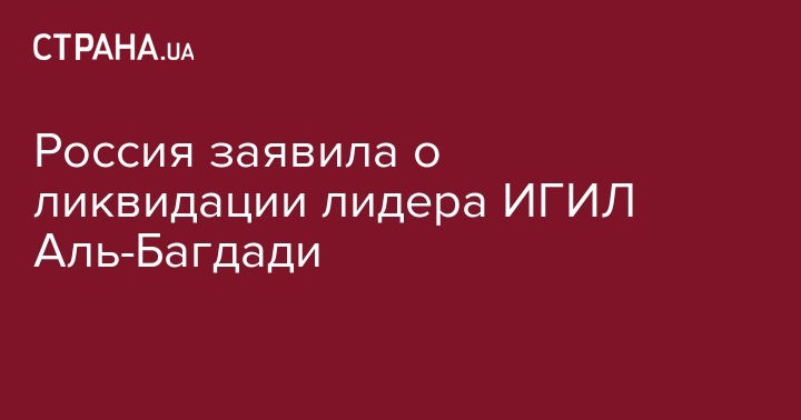 Министерство обороны России заявило, что в результате воздушного удара, нанесенного российской авиацией, в Сирии убит лидер террористической организации "Исламское государство" Абу-Бакр аль-Багдади. Об этом сообщает "Медуза".