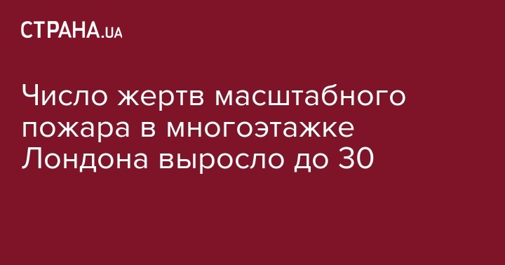 Число погибших в результате масштабного пожара в многоэтажке в западной части Лондона возросло до 30 человек. Об этом сообщает BBC World.