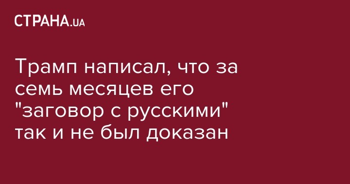 Президент США Дональд Трамп заявил, что за семь месяцев расследований никто не смог доказать существование его "заговора с русскими". Об этом Трамп написал в своем Twitter.