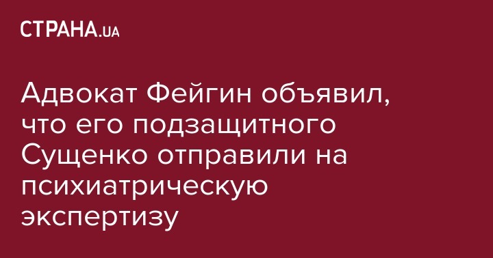 Адвокат Фейгин объявил, что его подзащитного Сущенко отправили на психиатрическую экспертизу
