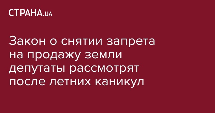 Законопроект об отмене моратория на продажу земель сельхозназначения депутаты рассмотрят уже после летних каникул. Об этом сказал первый заместитель министра аграрной политики и продовольствия Максим Мартынюк. Об этом пишет "Интерфакс-Украина".
