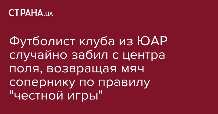 В ЮАР во время домашнего матча с "Блэк Леопрадс" полузащитник "Стелленбоша" Петрус Шитемби возвращал мяч по неписанному правилу честной игры и забил с центра поля.
