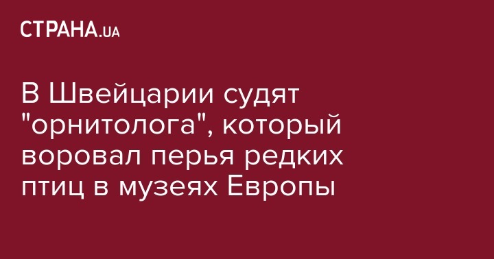 Как стало известно, 45-летнему швейцарцу будут предъявлены обвинения в похищении перьев из естественно-исторических музеев Германии, Австрии и Швейцарии. По данным прокуратуры, преступник под видом орнитолога в период с 2005 по 2012 годы посещал музеи в Базеле, Берне, Невшателе, Штутгарте, Франкфурте, Вене, Мюнхене и Берлине.
