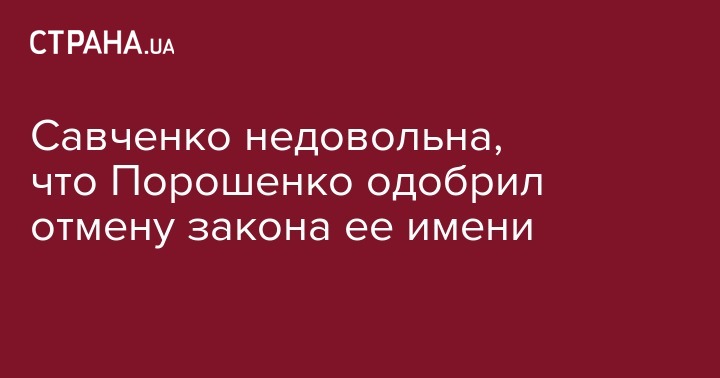 Нардеп Надежда Савченко прокомментировала одобрение президентом закона "О внесении изменений в Уголовный кодекс Украины о правилах сложения наказаний и зачисления срока предварительного заключения", который фактически отменяет "закон Савченко".  Об этом сообщает 112 Украина.