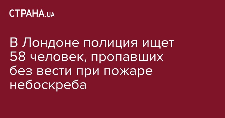 После пожара в лондонском многоэтажном доме Гренфелл-тауэр 58 человек числятся пропавшими без вести. Об этом сообщает ВВС.