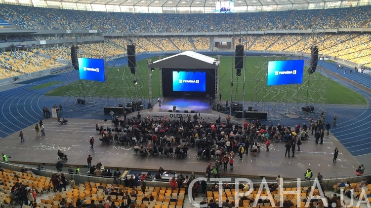 На площадке перед НСК "Олимпийский" - радостное оживление. Фото: Ольга Омельянчук/"Страна"
