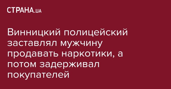 В Винницкой области сотрудники Департамента внутренний безопасности (ДВБ) задержали полицейского, который для фальсификации показателей работы заставлял местного жителя продавать наркотики наркозависимым, которых потом задерживала полиция. Об этом сообщает пресс-служба Нацполиции.