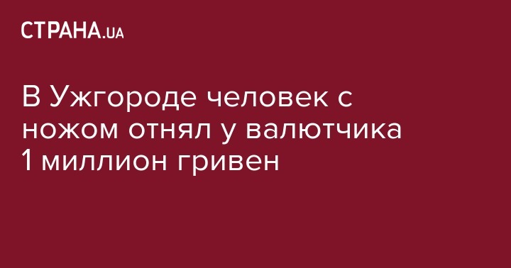 Сегодня, 19 июня, в Ужгороде на улице Можайского произошло нападение на валютчика. Вооруженный ножом злоумышленник похитил у мужчины сумку, в которой находился миллион гривен. Об этом сообщает УНН.