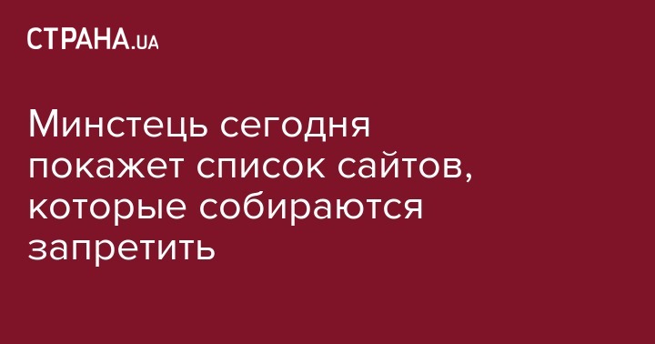 Министерство информполитики в течение понедельника, 19 июня, опубликует список сайтов, которые рекомендует запретить из-за угрозы безопасности. Об этом в ходе пресс-конференции в понедельник заявил министр информационной политики Юрий Стець, передает "Укринформ".