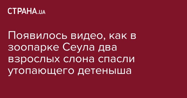 Появилось видео, как в зоопарке Сеула два взрослых слона спасли утопающего детеныша