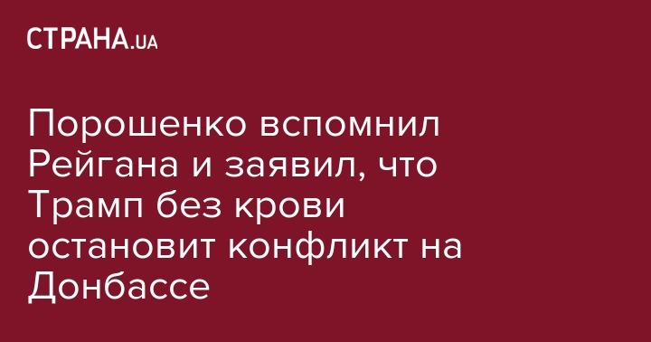 Порошенко вспомнил Рейгана и заявил, что Трамп без крови остановит конфликт на Донбассе