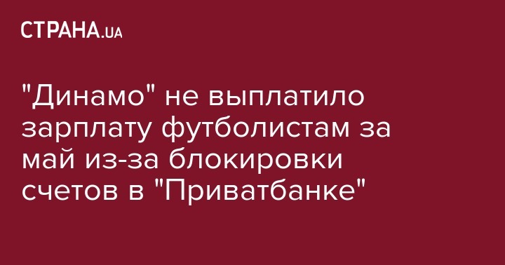 Столичное "Динамо" не смогло выплатить игрокам зарплаты за май из-за блокирования средств в "Приватбанке", об этом сообщает официальный сайт клуба.