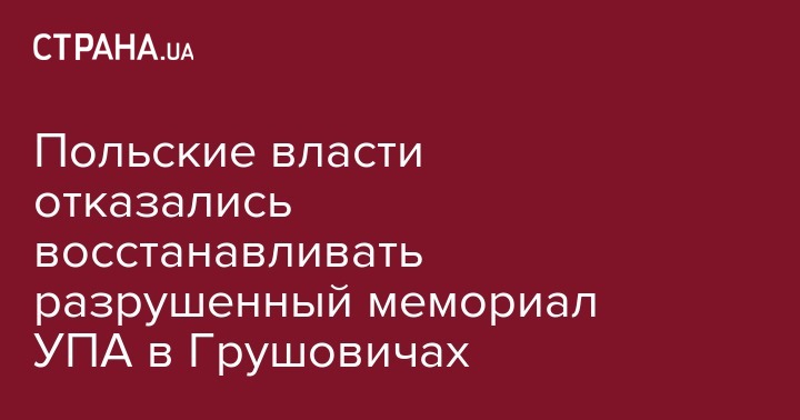 Мемориал бойцам Украинской повстанческой армии в Грушовичах, что рядом с польским городом Перемышль, восстановлен не будет.