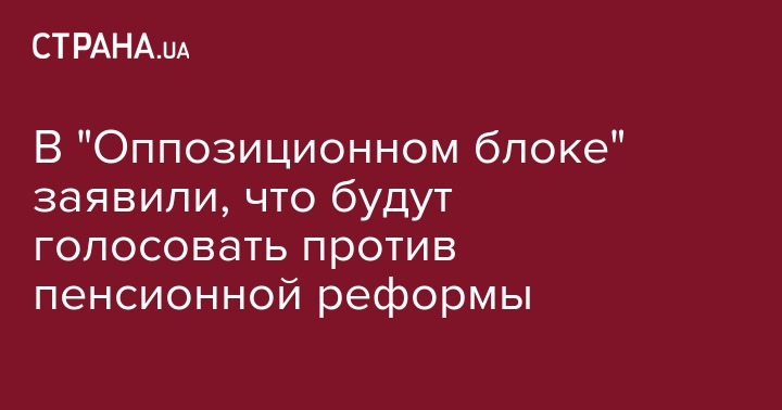 "ОБ будет голосовать против пенсионной реформы КМУ, суть которой - механическое сокращение количества пенсионеров", - говорится в сообщении нардепа.