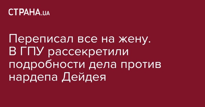 Как сообщает Украинская правда со ссылкой на источники в ВР, в представлении, которое было внесено генпрокурором Юрием Луценко, Дейдей подозревается в получении в собственность активов в значительном размере, законность оснований приобретения которых не подтверждена доказательствами, а также в передаче активов другому лицу.