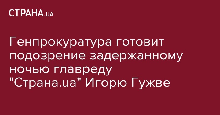 Прокуратура Киева и следователи Главного управления Нацполиции в Киеве готовятся вручить подозрение и ходатайство задержанным в ходе ночных несанкционированных обысков главреду издания "Страна.ua" Игорю Гужве и еще одному человеку. Об этом сообщает пресс-служба ведомства.