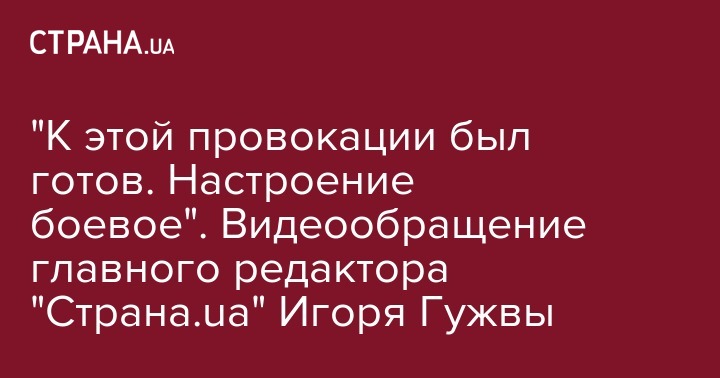 "К этой провокации был готов. Настроение боевое". Видеообращение главного редактора "Страна.ua" Игоря Гужвы