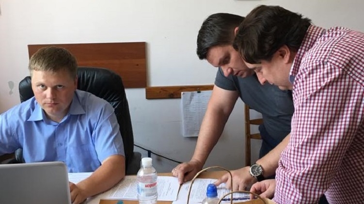 Главный редактор "Страны" Игорь Гужва и следователи, ведущие дело, фото: facebook.com/Lukash.ua