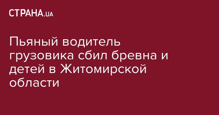 Сегодня, 25 июня, в Народичах Житомирской области 45-летний предприниматель в нетрезвом состоянии с превышением скорости наехал на деревянные бревна на обочине, после чего сбил двух детей. Об этом сообщила пресс-секретарь ГУНП в Житомирской области Алла Ващенкона на своей странице в Facebook.
