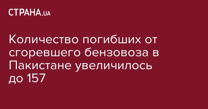 Количество погибших в результате возгорания цистерны бензовоза в Пакистане увеличилось до 157 человек. Об этом сообщает Associated Press.