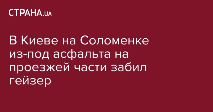 В Киеве на Соломенке из-под асфальта на проезжей части забил гейзер