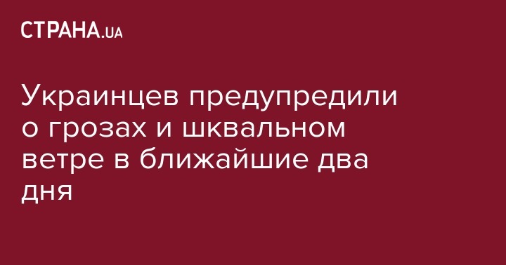 Украинцев предупредили о грозах и шквальном ветре в ближайшие два дня