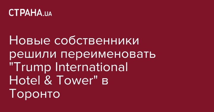 Название одной из "башен Трампа" будет изменено новым собственником. Владельцем расположенного в центре канадского города Торонто высотного здания "Trump International Hotel & Tower" стала компания JCF Capital ULC. По данным журналистов эта фирма "тесно связана с США". Об этом передает УНН со ссылкой на Bloomberg.