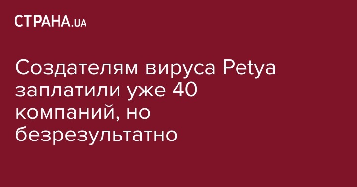 Создателям вируса Petya заплатили уже 40 компаний, но безрезультатно