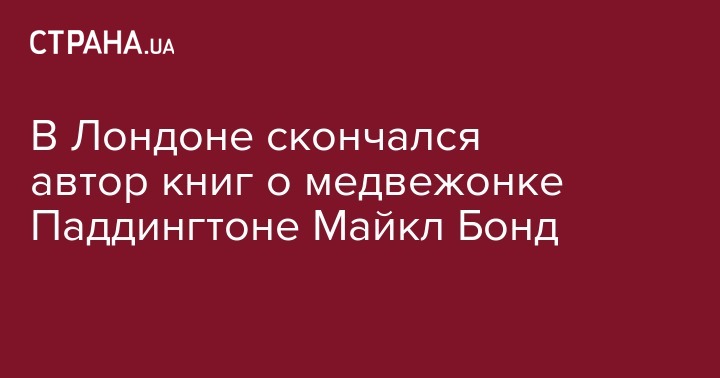 Британский писатель Майкл Бонд, автор детских книг о медвежонке Паддингтоне, скончался в Лондоне, сообщает в среду издательство Harper Collins.