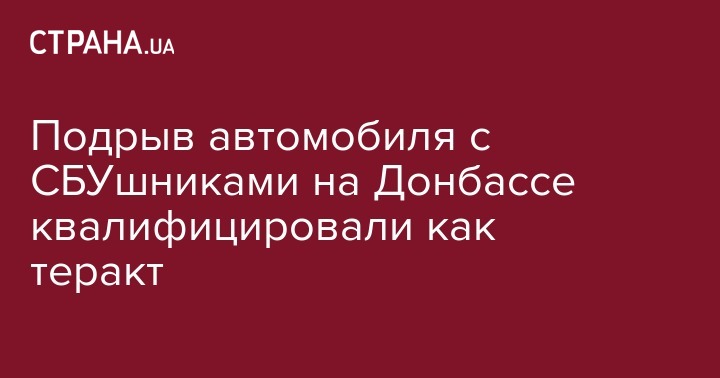 Военная прокуратура сил АТО квалифицировала подрыв автомобиля с сотрудниками СБУ в Донецкой области, в результате чего погиб один человек и трое получили ранения, как теракт. Об этом сообщает пресс-служба Генеральной прокуратуры в Facebook.