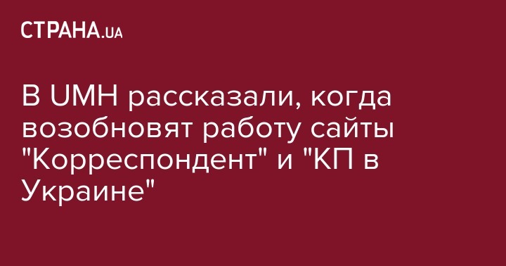По словам Оксаны Богдановой, главного редактора издания "Комсомольская правда" ("КП в Украине" входит в холдинг UMH group и также пострадал от хакерской атаки, – Прим.Ред.), их сайт должен возобновить работу буквально в ближайшие минуты.