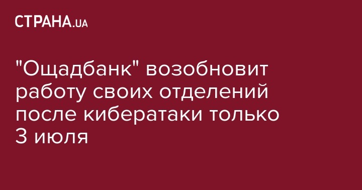 "Ощадбанк" возобновит работу своих отделений после кибератаки только 3 июля