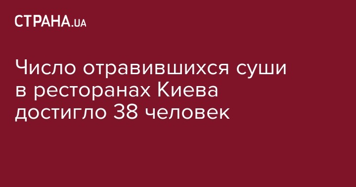 Количество заболеваний острой кишечной инфекцией после употребления суши в двух заведениях общественного питания Киева по состоянию на понедельник, 3 июля, составляет 38 случаев, сообщает пресс-служба ГУ Госпродпотребслужбы Украины в г.Киеве, сообщает "Интерфакс- Украина".