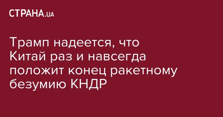 Трамп надеется, что Китай раз и навсегда положит конец ракетному безумию КНДР