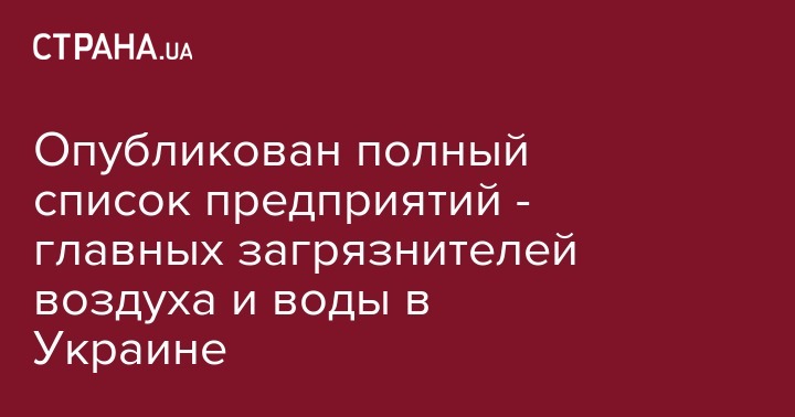 Министерство экологии и природных ресурсов составило рейтинг украинских предприятий, чьи отходы больше всего загрязняют воздух, воду и почву. О рейтинге написал на своей странице в Facebook глава министерства Остап Семерак.-