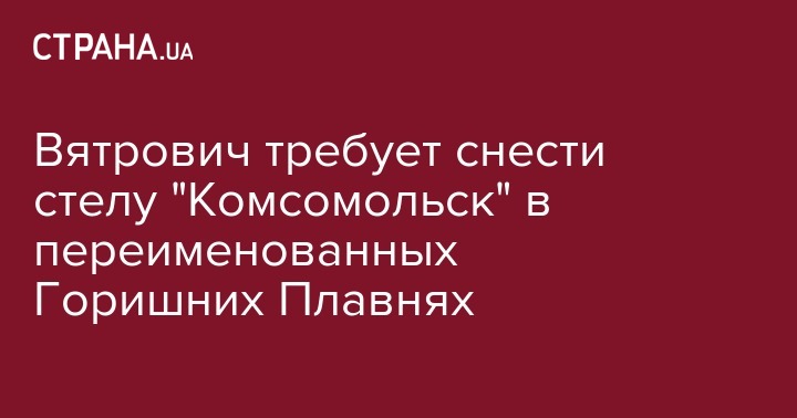 Вятрович требует снести стелу "Комсомольск" в переименованных Горишних Плавнях