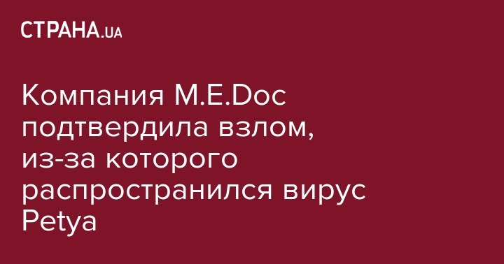 Украинская компания M.E.Doc, выпускающая бухгалтерское ПО, подтвердила факт взлома программного обеспечения, в результате чего был внесен вредоносный программный код. Об этом компания сообщила в Facebook.