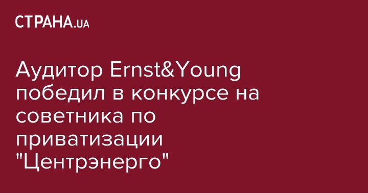 Независимый аудитор Ernst&Young (EY) выиграл конкурс по выбору советника для приватизации ПАО "Центрэнерго". Об этом сообщает "Интерфакс-Украина" со ссылкой на пресс-службу Фонда государственного имущества Украины.