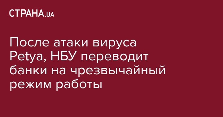 После атаки вируса Petya, НБУ переводит банки на чрезвычайный режим работы