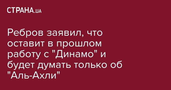 Ребров заявил, что оставит в прошлом работу с "Динамо" и будет думать только об "Аль-Ахли"