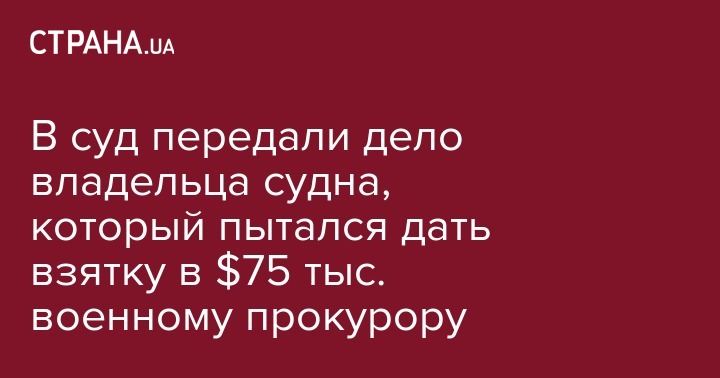 В сообщении сказано, что для этого в ходе встречи, которая проходила под контролем правоохранительных органов, он предоставил военному прокурору Южного региона Украины взятку в сумме $75 тыс за совершение процессуальных действий, направленных на снятие ареста с судна и груза.