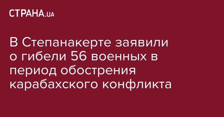 В Степанакерте заявили о гибели 56 военных в период обострения карабахского конфликта