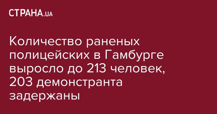 По меньшей мере 213 полицейских были ранены и 203 протестующих задержаны в ходе беспорядков в Гамбурге. Об этом сообщает агентство dpa.